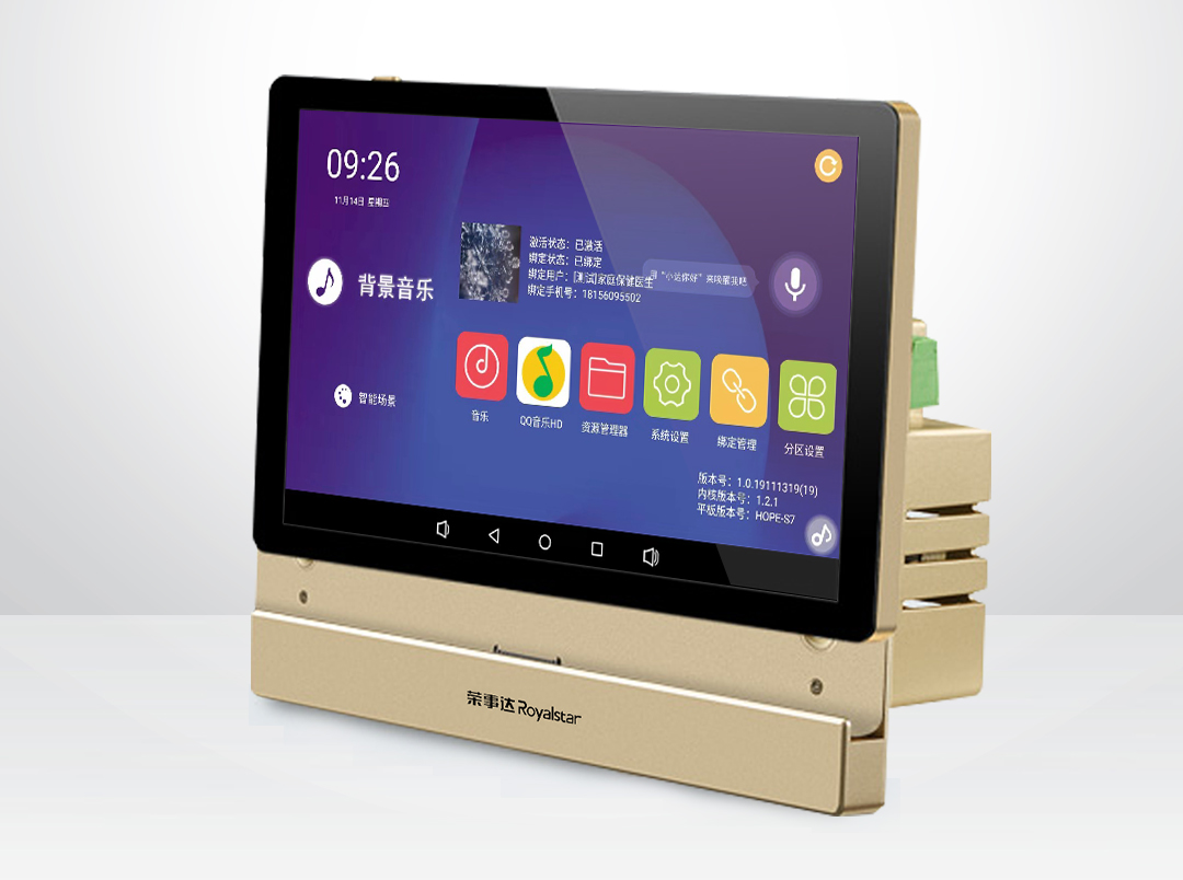荣事达智能背景音乐主机采用8寸全面屏技术,屏占比提升40%,1280*800高分辨率,带来1670万色的高清呈现;分离机身设计,主机可与机身分离,拿下来主机可以当平板使用。