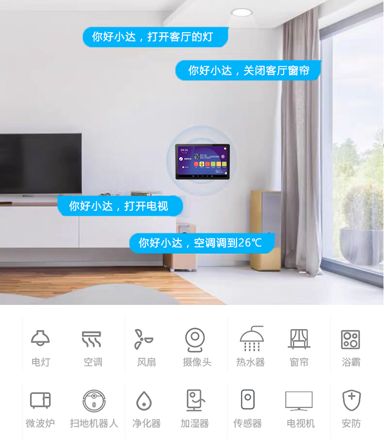 “你好小达,打开窗帘”